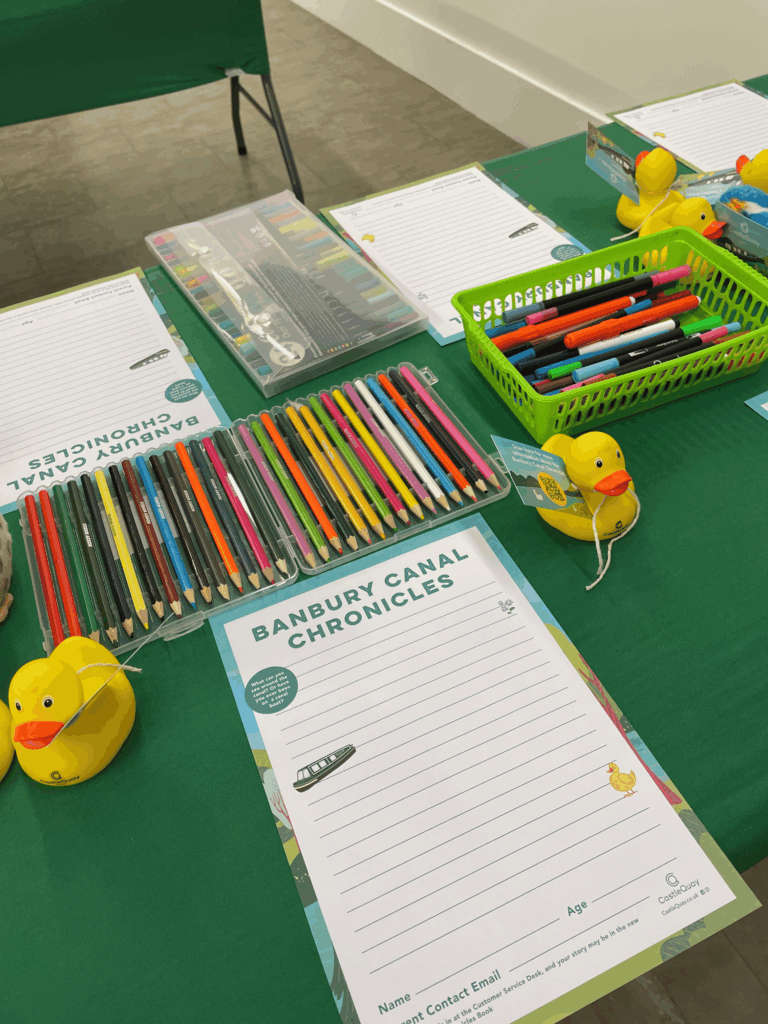 On Tuesday, 7th April, Castle Quay was transformed into a vibrant hub of creativity and canal-side celebration. The event marked the successful launch of our new community book project, the Banbury Canal Chronicles, and we were honoured to see so many families join us for a day of free, fun activities.