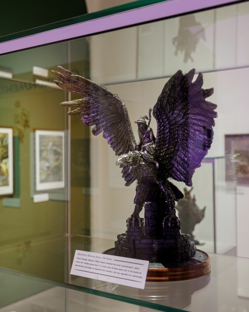 Highlights of the exhibition include three original paintings by acclaimed fantasy artist Paul Raymond Gregory, depicting scenes from The Lord of the Rings, The Silmarillion and The Hobbit hung in monumental, hand carved frames.